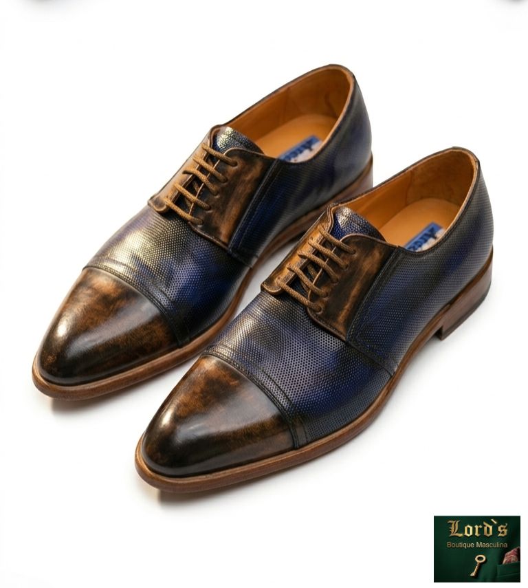 Zapato en cuero con textura combinado (Arcabuz Golfer)